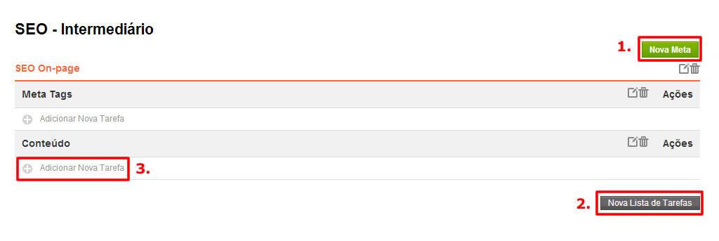 2) Depois que adicionar a meta, você poderá adicionar Listas de Tarefas